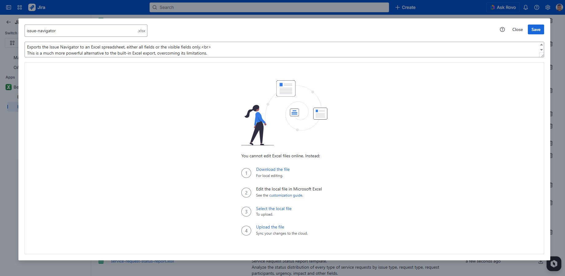 The Better Excel Exporter for Jira Cloud app enables users to create professional Excel files from work items, filters, and other Jira data. The whole process is intuitive and takes just a few clicks.