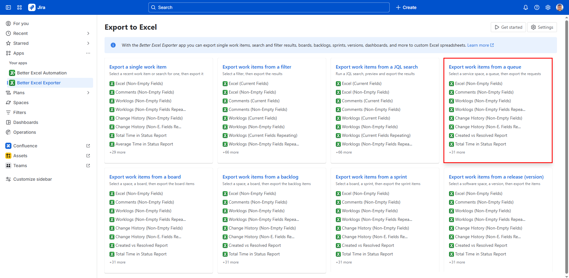 This release introduces a new view context to support Jira Service Management queues. It also adds 4 quick export options the Excel Export Center.
