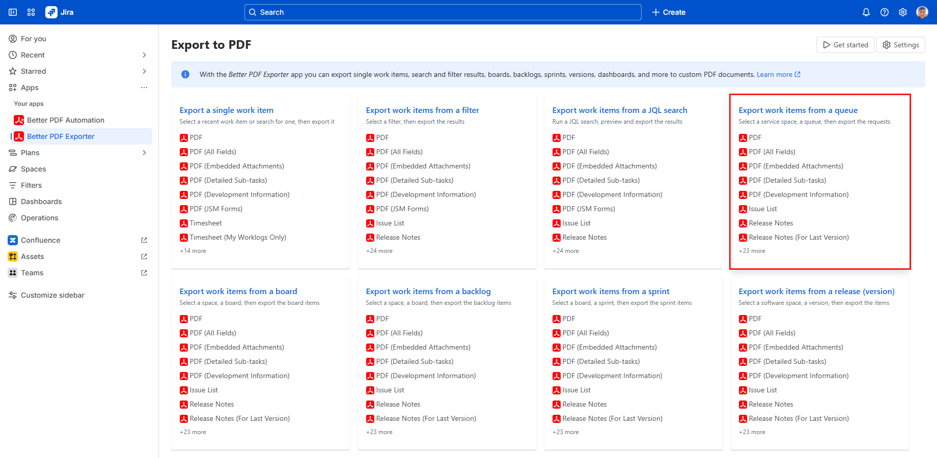 Team-managed (previously called Next-gen) boards (available in team-managed projects) are the new primary user interface for teams using Jira Software Cloud. From this version, Better PDF Exporter for Jira Cloud can export issues directly from both the backlog view and the board view of a team-managed board.